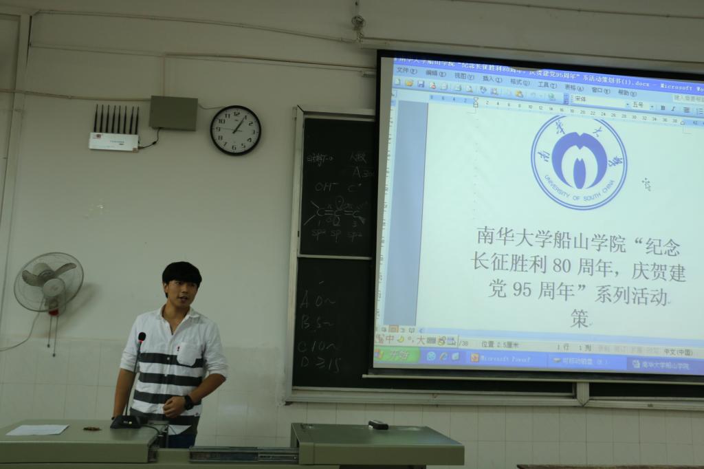 会上,唐康伟老师发表重要讲话。他指出,本次长征胜利80周年纪念活动是为了更进一步明确学院团学工作今后的努力方向,班委以及各部门学生干部应该正确地带领同学们学习长征精神,努力为班级、学院、学校做贡献,同时将长征精神发扬到生活、实践中去。唐康伟老师为同学们点明长征精神的内涵:勇往直前、坚韧不拔、团结互助、克服困难。同时,他要求全体学生干部,一是要将长征精神运用到此次大运会中,运动员努力训练、强化体能,各部门齐心协力、团结一致;二是要在思想上高度重视,努力展现船山学院积极向上、热情饱满的精神面貌。