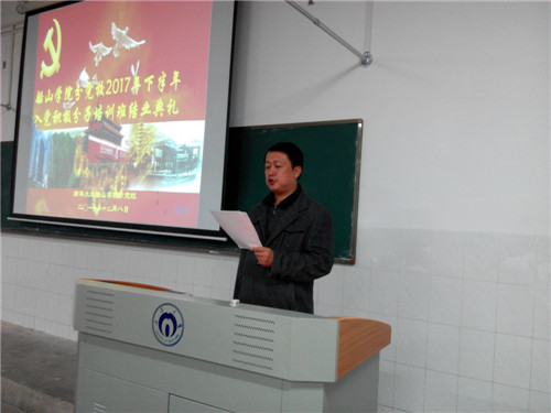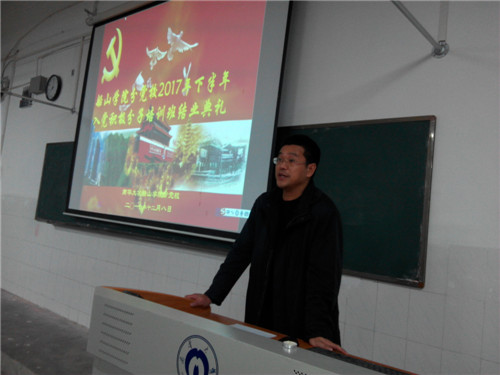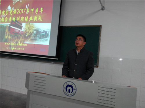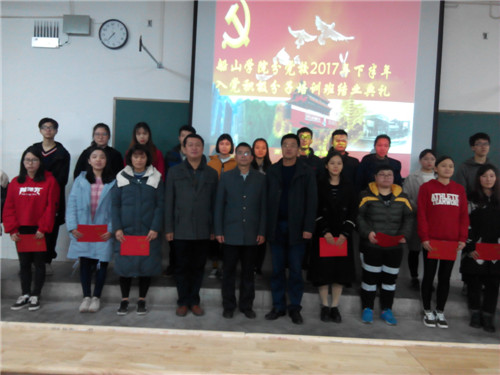 为做好入党积极分子的教育培养工作,切实提升船山学院党员发展质量,夯实基层党组织建设的基础,从2017年11月28日到12月8日,船山学院分党校举办了下半年入党积极分子培训班。本期培训开设一个班。在完成了开班仪式、理论授课、视频教学、实践教学、撰写心得体会、小组讨论、考试评优等一系列教学任务之后,分党校于2017年12月8日晚上在红湘校区225教室举行了下半年入党积极分子培训班结业典礼。