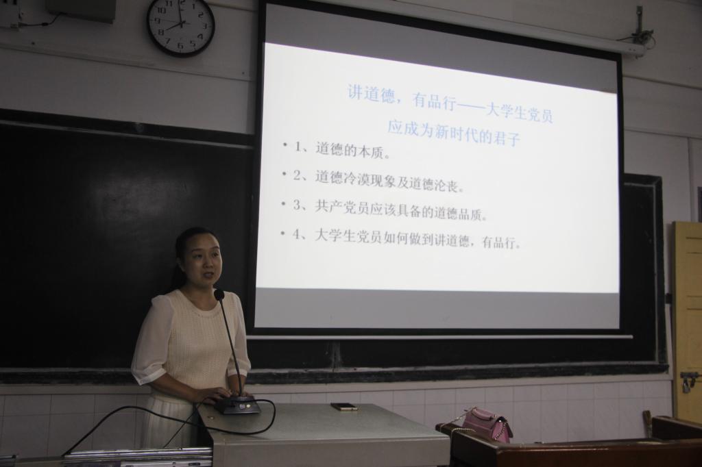 刘博艺老师从道德的本质、道德冷漠现象及道德沦丧、共产党员应该具备的道德品质和大学生党员如何做到讲道德、有品行四个方面,结合古今中外的历史故事及经典孔儒之学,由浅入深为同学们带来了一节生动的党课,理论与实践相结合,引领同学们领会新时代真君子应该具备的道德和品行。