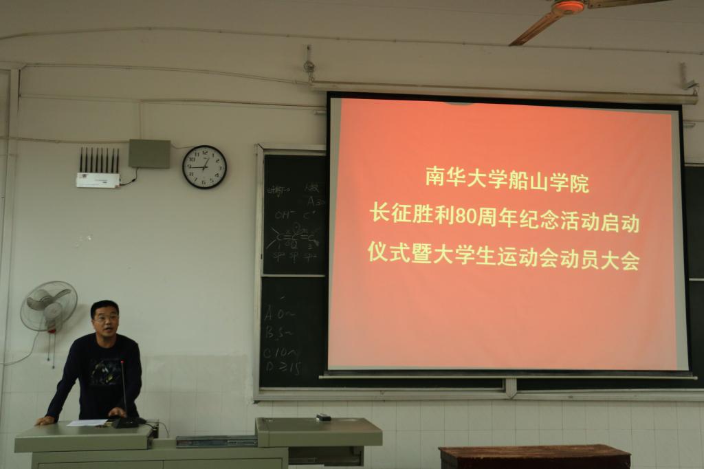 会上,唐康伟老师发表重要讲话。他指出,本次长征胜利80周年纪念活动是为了更进一步明确学院团学工作今后的努力方向,班委以及各部门学生干部应该正确地带领同学们学习长征精神,努力为班级、学院、学校做贡献,同时将长征精神发扬到生活、实践中去。唐康伟老师为同学们点明长征精神的内涵:勇往直前、坚韧不拔、团结互助、克服困难。同时,他要求全体学生干部,一是要将长征精神运用到此次大运会中,运动员努力训练、强化体能,各部门齐心协力、团结一致;二是要在思想上高度重视,努力展现船山学院积极向上、热情饱满的精神面貌。